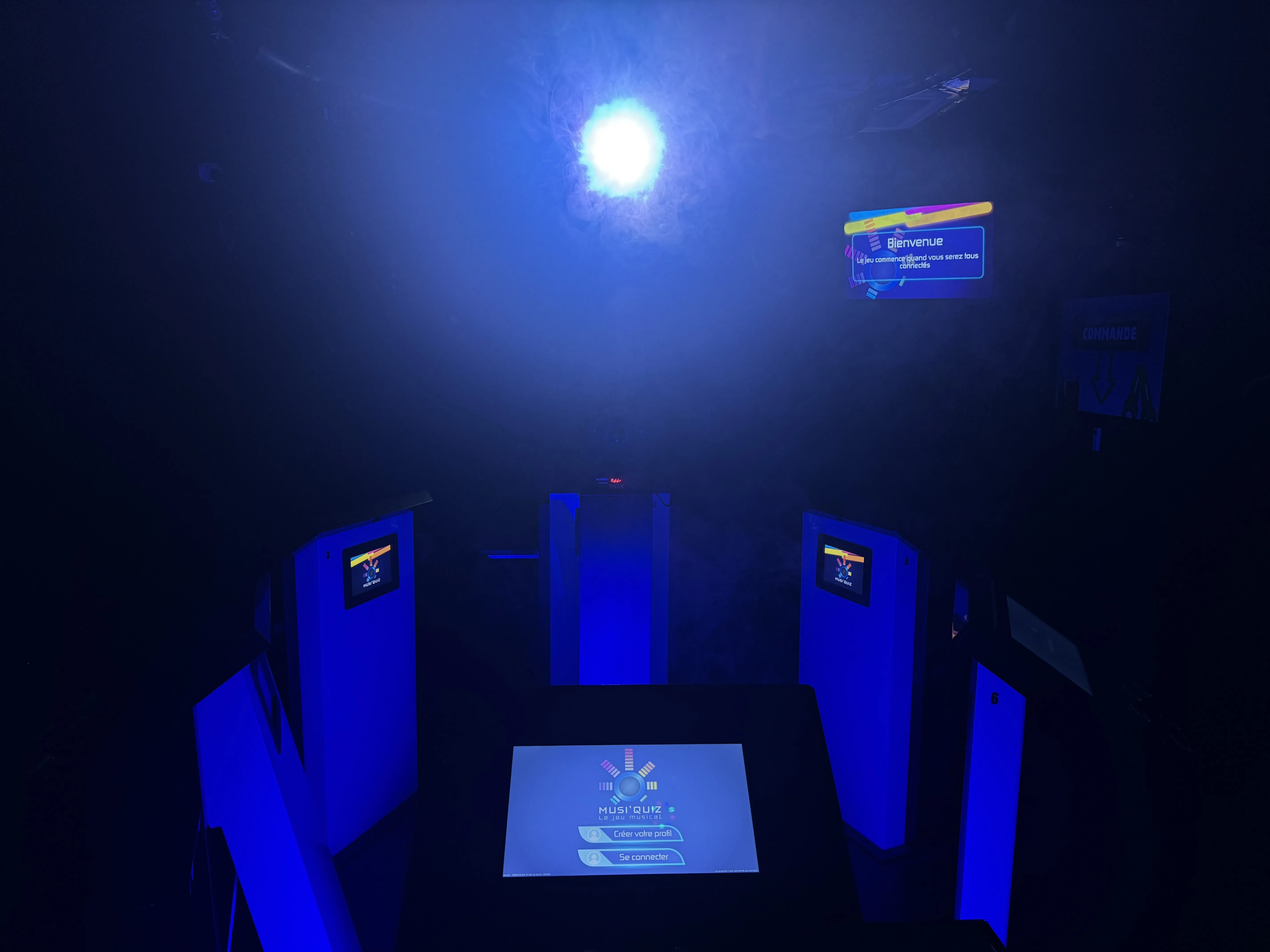 Le jour J, vous arrivez 10 minutes avant le début de la partie de blind test. Prêts ? Vous entrez sur le plateau, chacun son pupitre. Chaque salle compte 6 pupitres, à partir de 7 joueurs, le jeu musical se fait en équipe, les duos/trios s’affrontent !